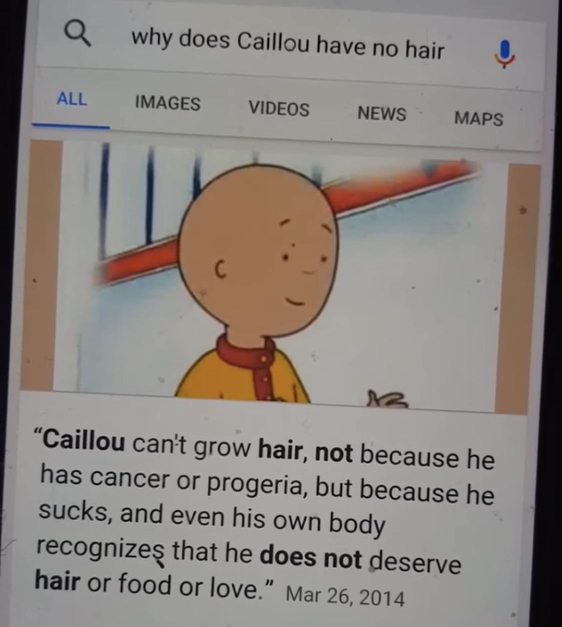 Why Does Caillou Have No Hair : Image Result For Why Does Caillou Have No Hair Best Memes Memes Video New : Check spelling or type a new query.. Why does caillou have no hair. Check spelling or type a new query. We did not find results for: Maybe you would like to learn more about one of these?